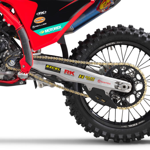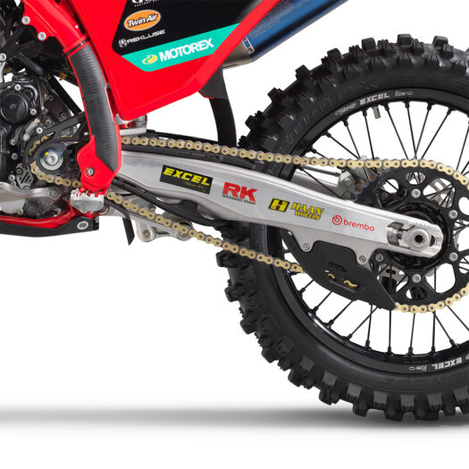 Kyvná vidlice je vyrobena speciálním procesem odlévání a navržena tak, aby dokonale odpovídala ohybovým vlastnostem rámu, a je tak velmi lehká. Zadní vodítko řetězu zabraňuje hromadění bláta, zatímco jeho zaoblený design pomáhá klouzat po hlubokých kolejích, pokud se na kole něco děje!