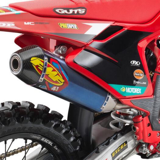 Nejenže vypadá skvěle díky modře eloxovanému titanovému tělu a trikové karbonové koncovce, ale díky tlumiči FMF Factory 4.1 RCT je na tomto motocyklu opravdu slyšet štěkot! V rámci technického příslušenství je jasné, proč jsou tlumiče FMF Factory 4.1 RCT tak oblíbené.