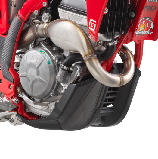 Tovární kluzná deska, která přesně obepíná spodní část motoru 250 ccm, nabízí neuvěřitelnou ochranu před kameny, kameny a zabrání téměř všemu, co by mohlo poškodit motor na trati. Tento karbonem vyztužený ochranný štít motoru se táhne kolem obou stran motoru.