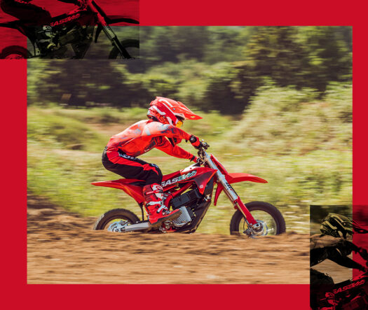 Dirtová kola pro nejmladší mini drtiče nejsou o moc lepší než GASGAS MC-E 5! Tato miniaturní červená raketa poháněná bateriemi je ideální pro učení, ale stejně tak schopná i při závodění. Nyní je chlazená vodou, takže má stálý výkon, a zábava tak trvá déle! Pak je tu nový rám. Nejnovější podvozek vyvinutý speciálně pro model MC-E 5 je mnohem pohodlnější a jízda na něm je mnohem snazší. Stejně jako jeho větší bratři z řady GASGAS jsou tu pneumatiky MAXXIS, řídítka NEKEN, gripy ODI a nastavitelné odpružení WP a super cool černé ráfky, které tomu všemu dodávají šmrnc. Jednoduše řečeno, MC-E 5 je opravdová bomba. Je to plnohodnotný motokrosový motocykl, který je určen pro děti, které se teprve seznamují s jízdou v terénu, až po mladé závodníky, kteří se honí za mistrovskými tituly.