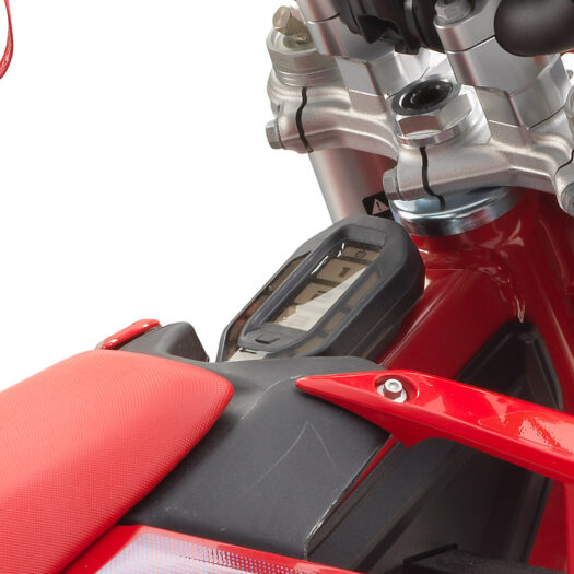 Jezdci dělají chyby, to vše je součástí zábavy! Ale musí být také bezpečná, a proto je GASGAS MC-E 5 vybaven senzorem převrácení, který vypne napájení, pokud jezdec spadne nebo nabourá. Díky šňůrce připevněné k zápěstí i k motorce se v případě pádu jezdce motor zastaví. Pomocí klíče lze také nastavit a uložit nastavitelné jízdní režimy, což zabrání rozjíveným závodníkům přepnout na výkonnější jízdní režim dříve, než jsou na ně’připraveni!