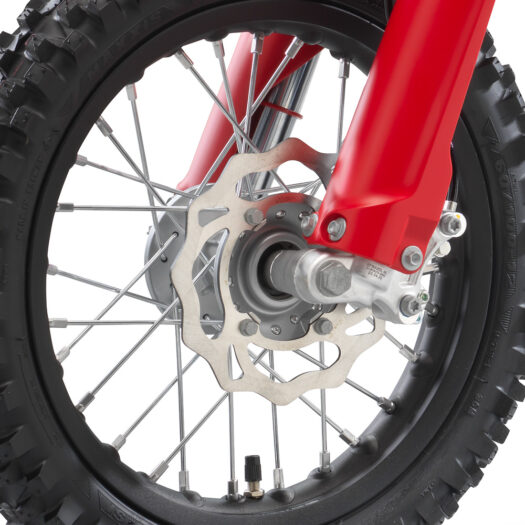 Stejně jako naše motokrosová kola plné velikosti zaručují kola namontovaná na MC-E 5 pevnost a spolehlivost. Pneumatiky MAXXIS se super cool lehkými ráfky z černě eloxovaného hliníku zajišťují přilnavost bez ohledu na jízdní povrch.