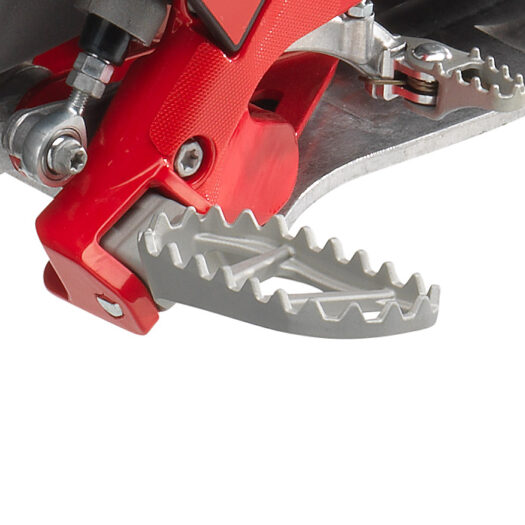 Pro zlepšení pohodlí na kole byly kompletně přepracovány nášlapy se zvětšenou plochou blíže k rámu. Tato jedinečná konstrukce včetně upevňovacího šroubu, který je zcela skrytý v rámu, umožňuje jezdci účinnější uchopení motocyklu, což ve srovnání s předchozími modely výrazně zlepšuje ovládání. Stejný osvědčený speciální proces mikroodlévání zůstal zachován pro zachování nízké hmotnosti a maximální přilnavosti.