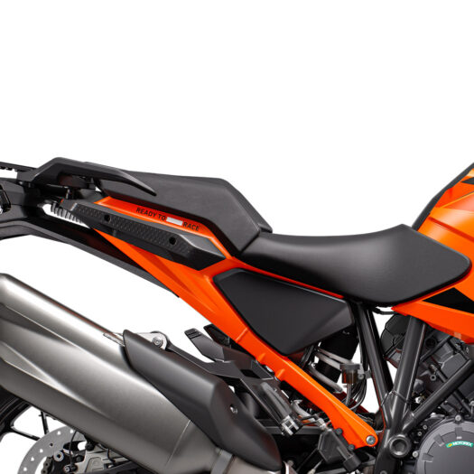 Sedlo nového modelu KTM 1290 SUPER ADVENTURE S, na kterém budeš trávit většinu času, tvoří dvě samostatné části pro jezdce a spolujezdce, přičemž výška sedla jezdce je nastavitelná v rámci 20 mm, od 849 mm do 869 mm. Přístup k podsedlovému prostoru je také snazší, a to díky tomu, že západka sedla se ovládá pomocí tlačítka.