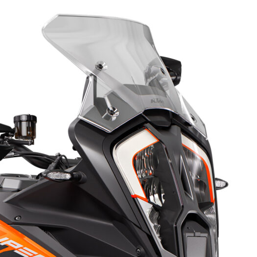 Konstrukce větrného štítku byla optimalizována ve větrném tunelu, aby jezdce ochránil před větrem při jízdě ve vysokých rychlostech. Můžeš se tak těšit na maximální pohodlí i při rychlé jízdě. Jeho nastavování usnadňují dva postranní otočné ovladače umožňující měnit výšku štítku v rozsahu 55 mm.
