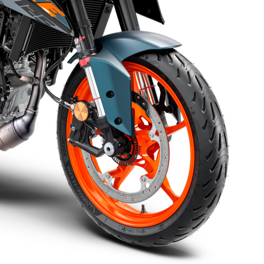 Motocykly řady KTM DUKE se zaměřují na snížení hmotnosti tam, kde to má největší smysl, vývojáři se proto soustředili na snížení neodpružené hmotnosti pomocí lehkých ráfků kol a přilnavých pneumatik Michelin Road 5. Tím se zlepšila nejen celková ovladatelnost, ale také ochota stáčet se do zatáček a dochází k menšímu namáhání komponent, jako jsou osy a ložiska.