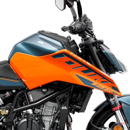 Díky mírně delšímu rozvoru, upravené výšce sedla a nové geometrii rámu nabízí modely řady DUKE výrazně vylepšené vlastnosti při průjezdu zatáčkami, vyšší stabilitu a lepší ovladatelnost. To v kombinaci s již tak vynikající pověstí coby THE SPAWN OF THE BEAST a agresivní polohou při sezení znamená, že KTM 125 DUKE stanovuje měřítka v kategorii motocyklů NAKED.