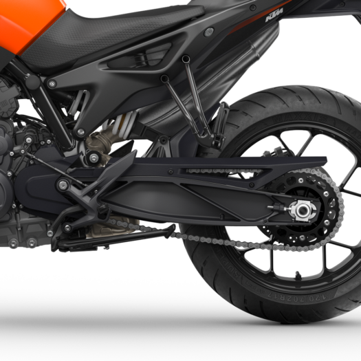 Kyvná vidlice s otevřenou žebrovou konstrukcí, litá pod tlakem, je pečlivě vyrobena a byla optimalizována z hlediska tuhosti a stability, přičemž stále nabízí vynikající pružnost. Pomocí přímého spojení se zadním tlumičem dochází k omezení složitosti a počtu součástí.