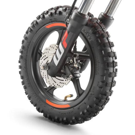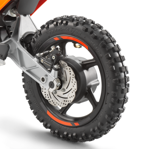 Dostatečný brzdný výkon zajišťují radiální hydraulické kotoučové brzdy s kotouči o průměru 140 mm vpředu i vzadu. Také ruční páky lze nastavit tak, aby je mohli snadno ovládat i mladí jezdci s menší rukou. Motocykl používá brzdové destičky, které jsou snadno dostupné, protože jsou stejné jako u špičkových jízdních kol.
